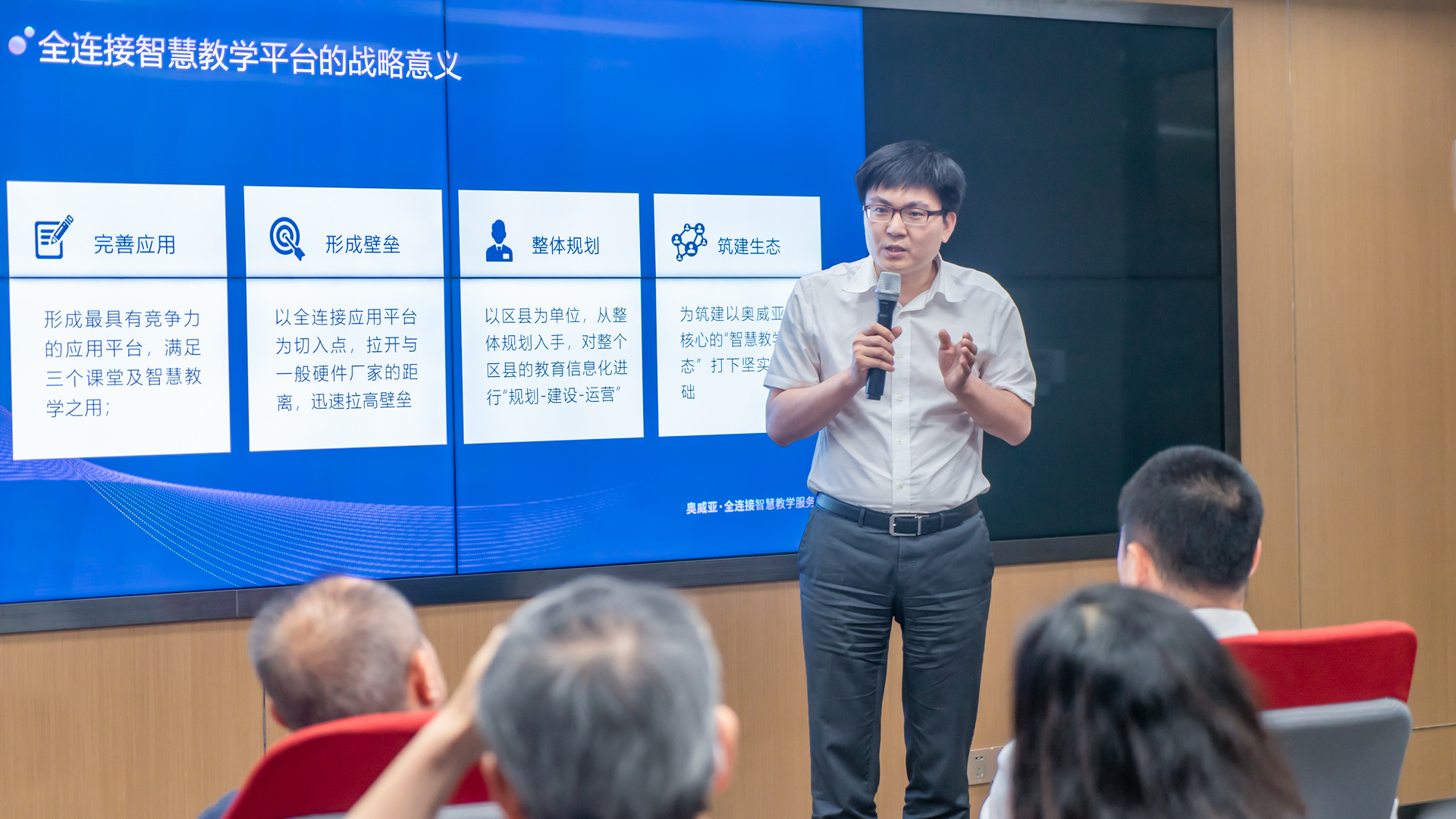 会议对全连接智慧教学方案和奥威亚转型升级进行了专题交流研讨,指出奥威亚正在从产品向应用拓展,需要在实践中不断完善,整合资源构建教育新生态,助力教育优质均衡发展。