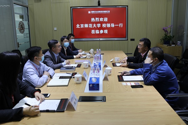 2月5日,北京师范大学校长助理、珠海分校副校长郑国民 ,北京师范大学教务部培养办公室副主任张晓辉一行到访国新文化。公司党委书记、总经理姚勇陪同参观国新文化智慧教育展示体验中心并开展交流研讨。公司总经理助理施孔明,智慧教育事业部总经理杨璐晟,奥威亚京津大区相关负责人等参会。