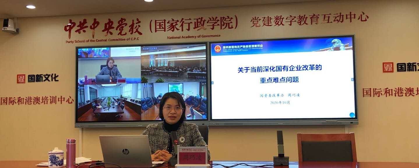 10月29日,中央党校(国家行政学院)国际和港澳培训中心与国新文化控股股份有限公司共建的党建数字教育互动中心正式投入使用。中心运营由国新文化所属奥威亚公司提供产品和技术服务保障。曲江文化集团高级经营管理人员综合能力提升培训班网络直播课在当日举办,国资委改革办副主任、国务院国企改革领导小组办公室地方改革协调组副组长周巧凌作《关于深化国有企业改革的重点难点问题》专题授课。