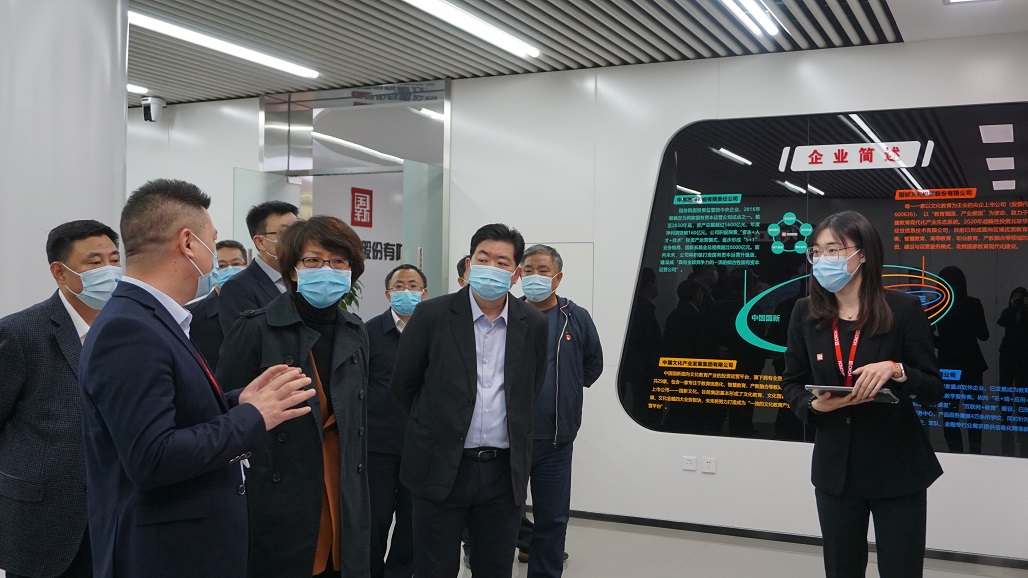 4月15日,北京市西城区区委书记孙军民,区委副书记、区长孙硕一行到新华1949文化金融与创新产业园考察调研,期间,赴国新文化控股股份有限公司走访调研。中文发集团党委委员、副总经理、工会主席张忠灵,国新文化董事会秘书、总法律顾问刘登华陪同考察。