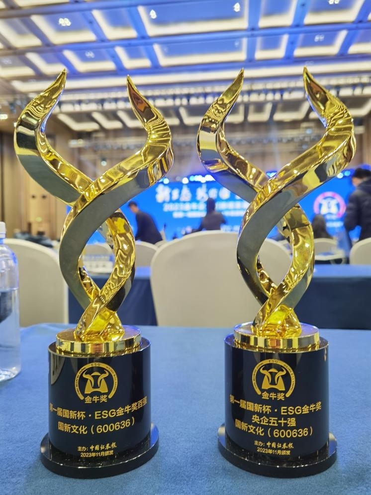 近日,在中国上市公司高质量发展论坛暨第二十五届上市公司金牛奖颁奖典礼上,国新文化控股股份有限公司荣获国新杯•金牛奖esg百强、央企esg五十强,这是国新文化继去年获评“央企esg·先锋50”后第二次荣获esg奖项。
