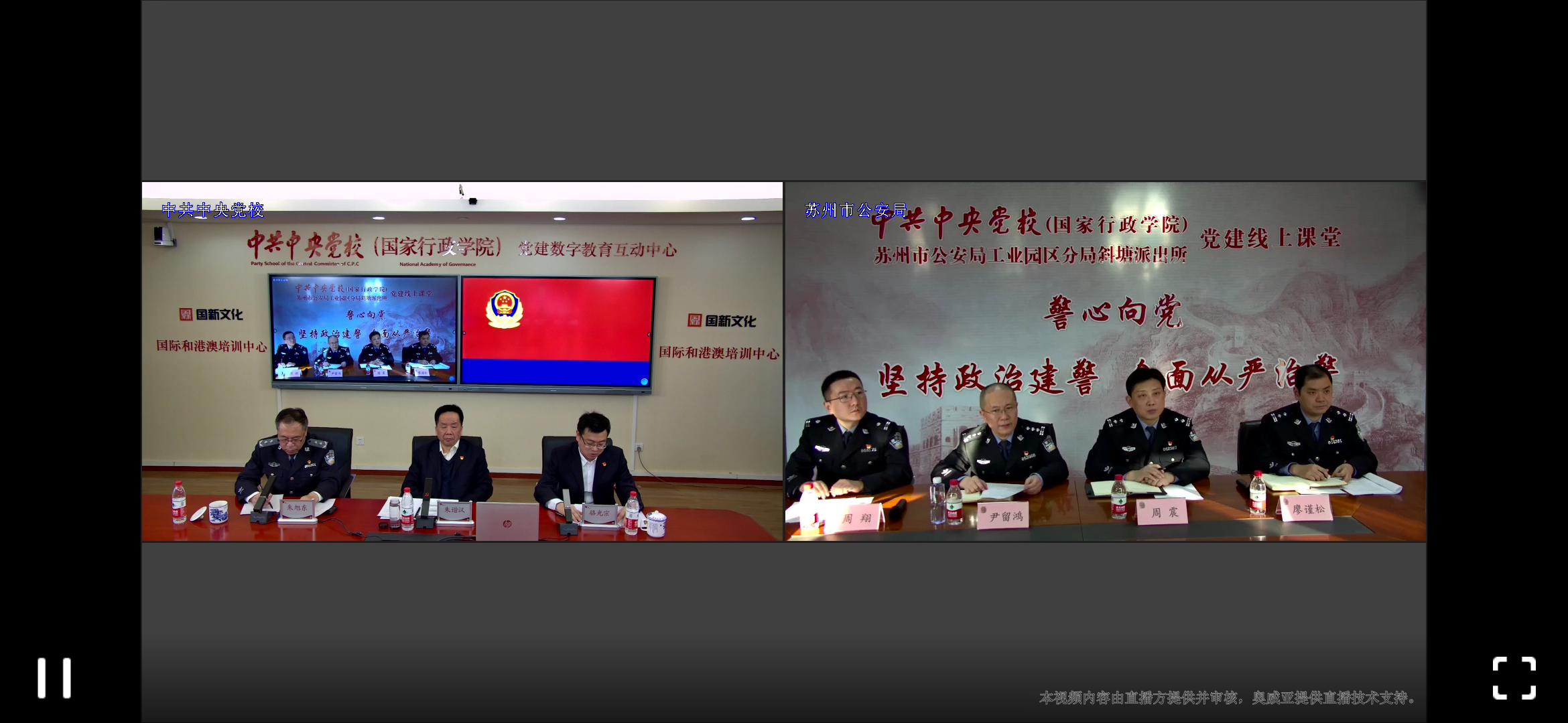 12月4日,“警心向党” 主题论坛在中央党校(国家行政学院)国际和港澳培训中心、江苏苏州市公安局工业园区分局斜塘派出所两地以空中连线直播互动方式举办,由国新文化旗下企业奥威亚提供云互动、直录播等产品和技术服务保障。