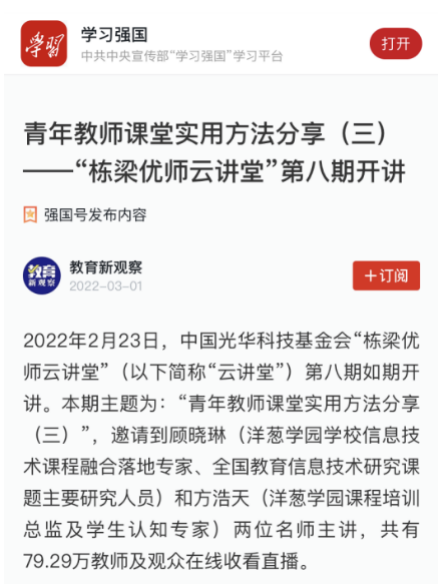 “教育新观察”学习强国号进行报道