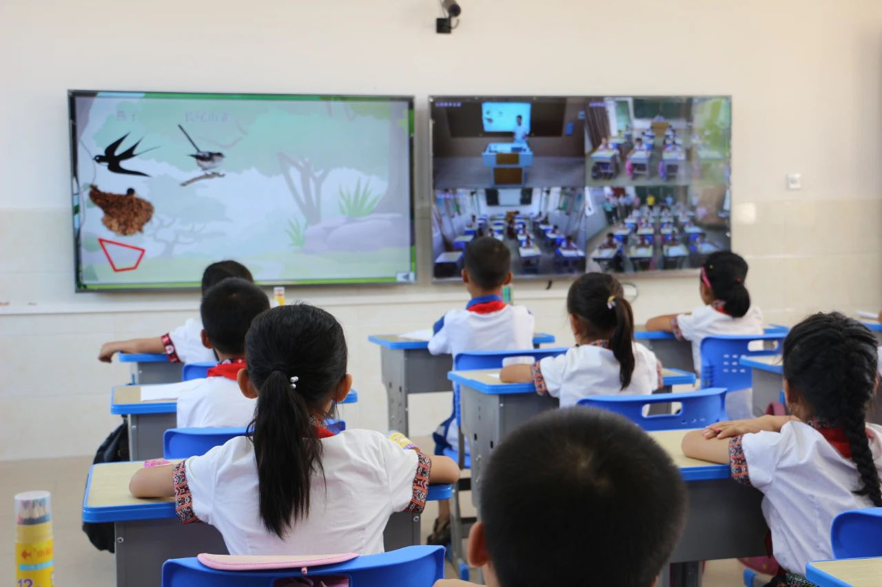 前不久,一堂不同寻常的美术课使海南省白沙黎族自治县打安镇田表小学的同学们又兴奋又好奇。望着墙上的电视屏幕,同学们看到一位老师正在讲授如何给小鸟画一个家,画面上还显示着3个班级的教室实景,左边的屏幕里则播放着课件。白沙县第一小学的美术教师林江正在县城的主讲教室中给田表小学、南叉小学、港政联小学3所乡村教学点的三十余名学生实时远程授课。据悉,海南省率先在白沙县建设“专递课堂”,计划2020年底之前,实现全省乡村小规模学校“专递课堂”全覆盖。
